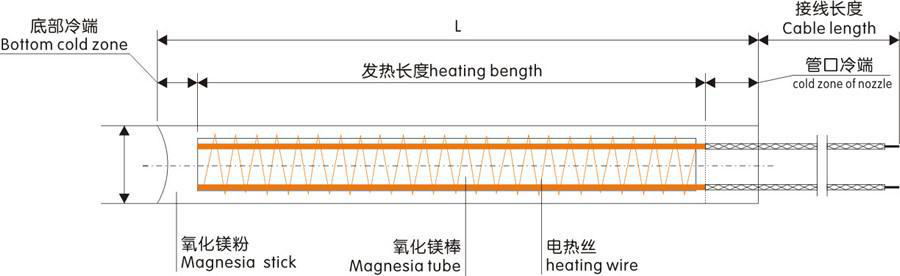 1、單頭加熱管按外形分,一般分為: ①微型單頭加熱管:直徑Φ2.2~Φ5.9㎜ ②標準單頭加熱管:直徑Φ6~Φ25㎜ ③大型單頭加熱管:直徑Φ25~Φ100㎜ 2、長度不受限制,可以做到20-5000MM。 3、功率高,是正常電熱管的功率的2-5倍,可以做到(表面積20瓦特/平方厘米),國外甚至可以做到(表面積60瓦特/平方厘米)。 4、具有結(jié)構(gòu)簡單,機械強度高、熱效率高、安全可靠、安裝簡便、使用壽命長、無污染、價格便宜等特點,同時節(jié)省電能,使用安全,可以彎成各種形狀、輕便、拆裝方便。